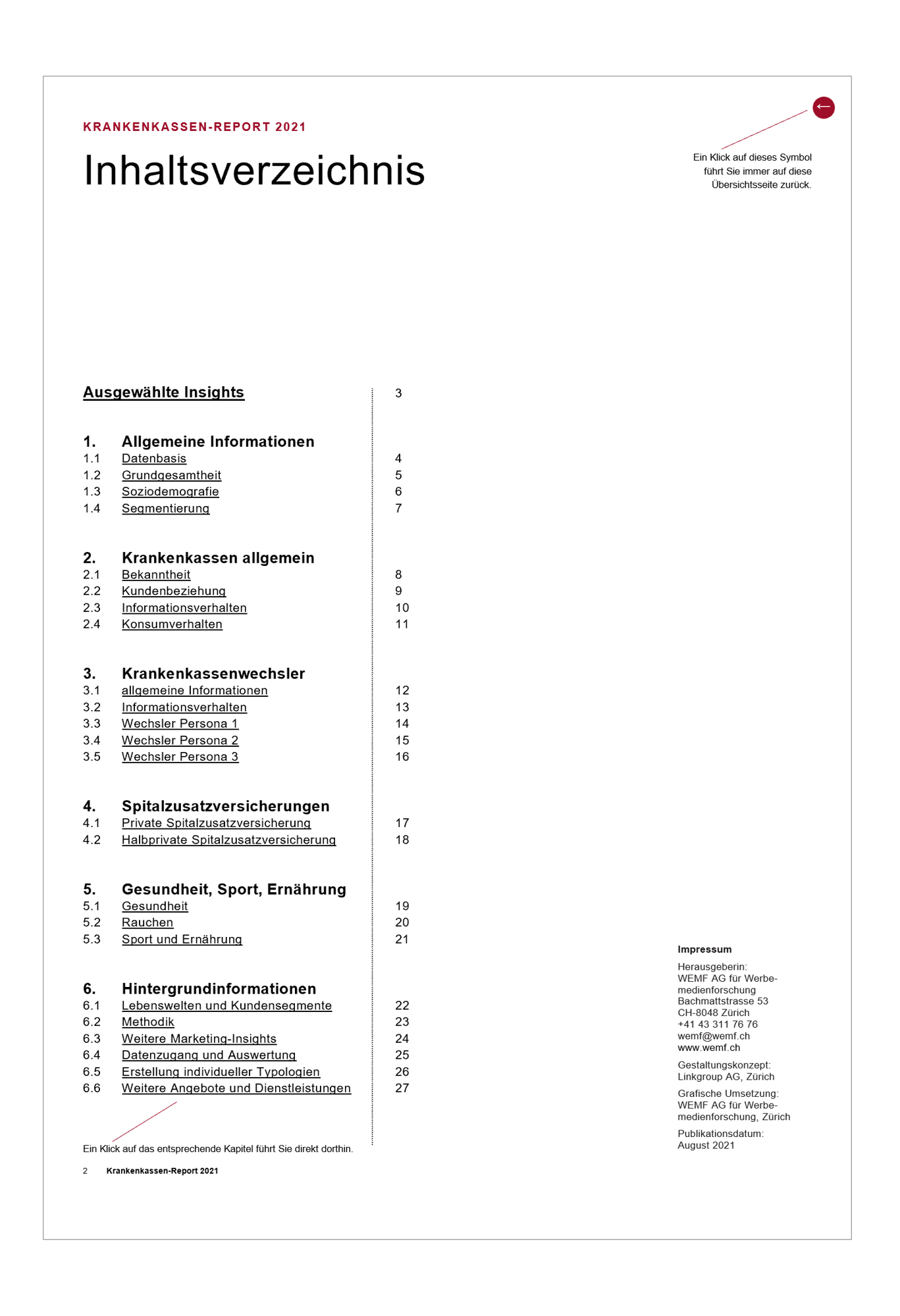 Die detaillierte Branchenanalyse gibt Aufschluss über die Lebenswelten, Einstellungen sowie das Informations- und Konsumverhalten der Schweizer Krankenkassenversicherten. Ein besonderes Augenmerk gilt der Zielgruppe der Wechslerinnen und -wechsler sowie den Zusatzversicherten. Grafische Darstellungen und Personas machen die Insights einfach verständlich. Der Krankenkassen-Report basiert auf der grössten Konsum-Medien-Studie der Schweiz und ist damit repräsentativ für alle Landesteile.